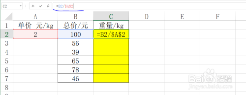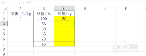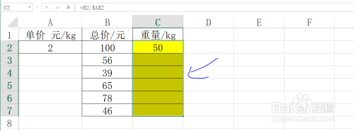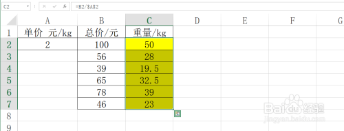 按Ctrl+D键即可实现Excel工作表快速按照总价和单件来求重量。