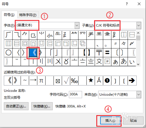 ●子集选择“CJK 符号和标点”;