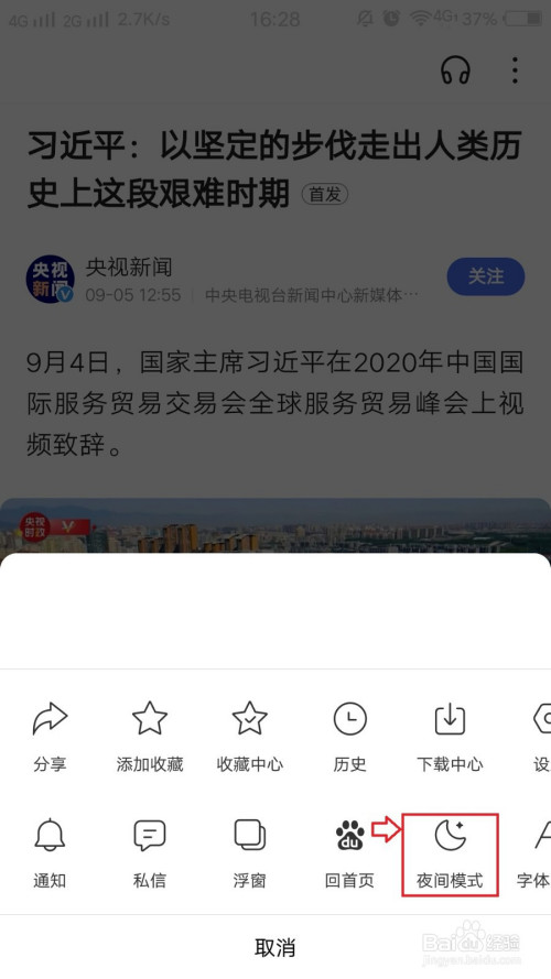 到这一步就很直不雅了,您可以本身选择打开或者封闭夜间模式。