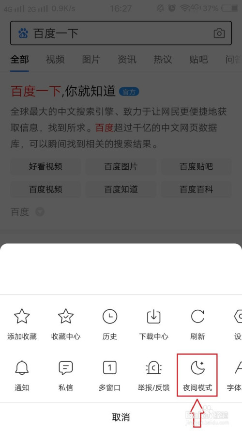 打开手机百度,点击底部的“我的”,然后在常用功能里找到切换“夜间模式”和“日间模式”的按钮。