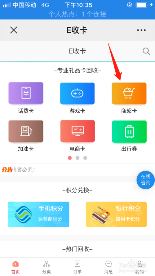 在首页中选择商超卡