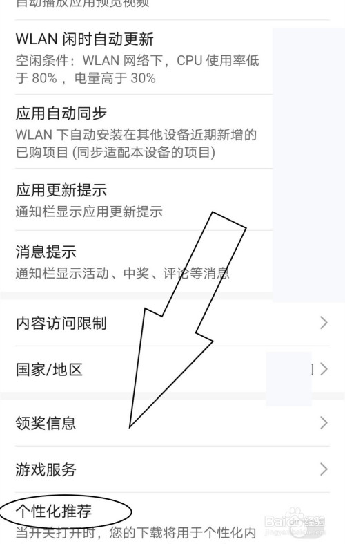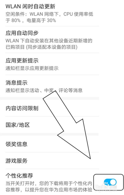 下拉页面至最后,找到“个性化保举”。