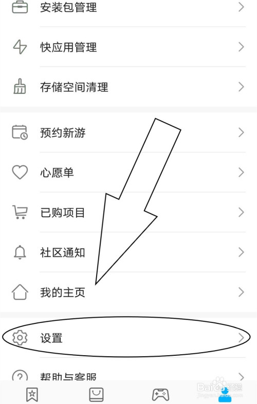 2.在我的页面中找到“设置”按钮。
