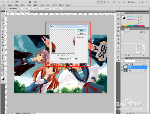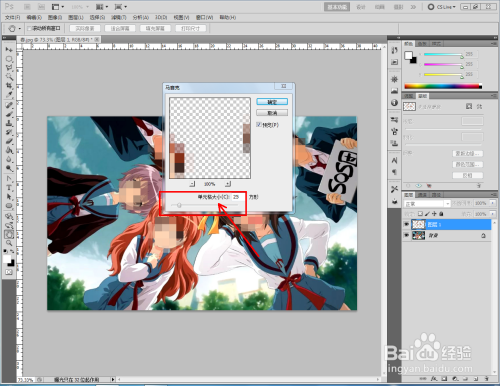 点击【滤镜】-【像素化】-【马赛克】,弹出马赛克设置框(如图所示);