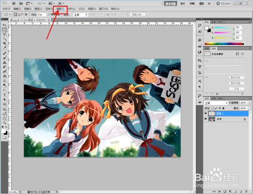 打开Adobe Photoshop CS5软件,打开一张找好的图片;