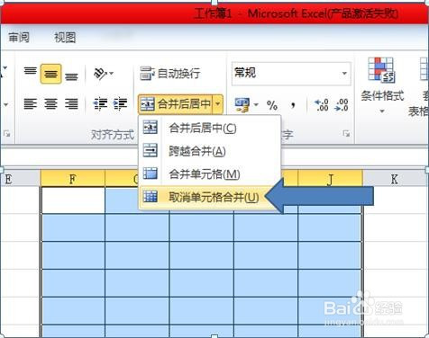 6.在以上步调,点击打消单位格归并,表格从头又返回原样