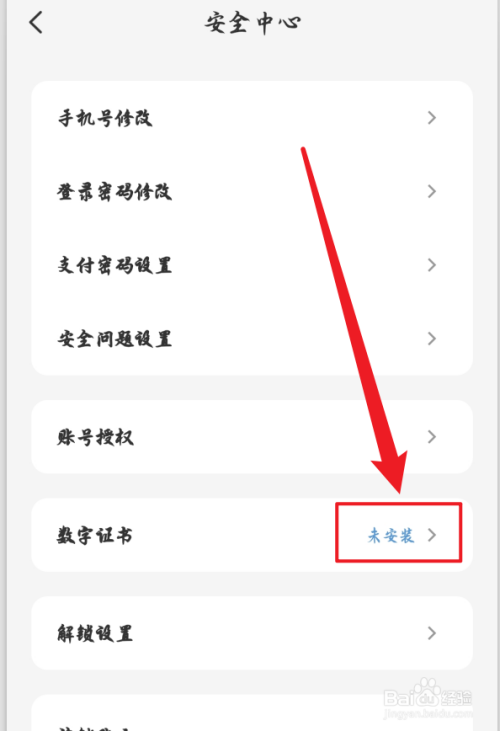 接着,点击平安中间中的【数字证书】选项。