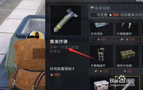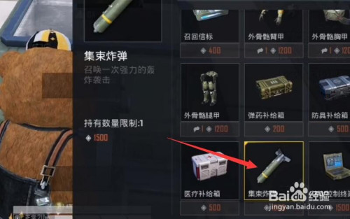 4、破费1500道具采办获得集束炸弹。