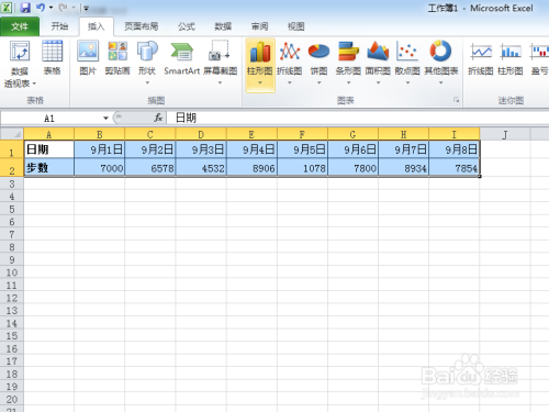 点击“柱状图”,并选择柱状图下拉菜单的合适形式;