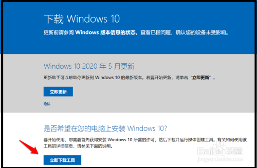 百度搜刮输入:下载Windows10,打开下载Windows10网页,点击:当即下载东西;