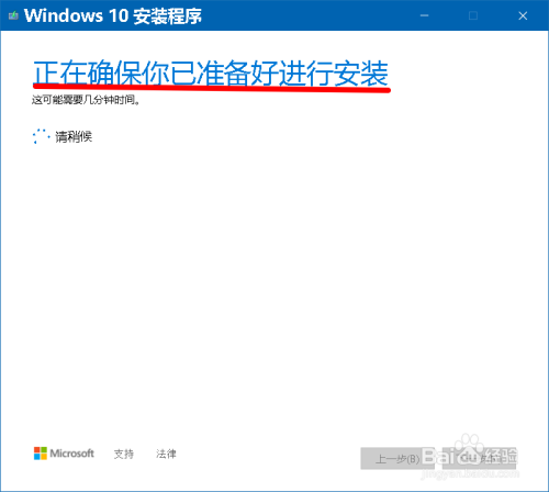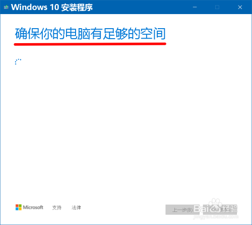Windows 10安装程序 正在查抄是否已筹办好进行安装和电脑是否有足够的空间;