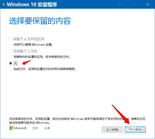 然后打开 选摘要保留的内容 窗口,在这里有三种选择:保留小我文件和应用、仅保留小我文件和无(包罗文件、应用和设置在内的所有内容都将删除)。