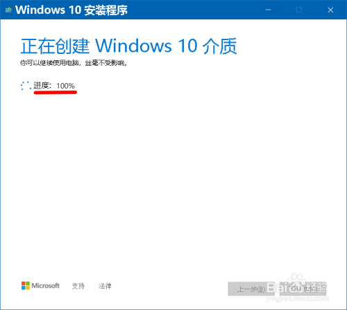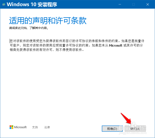 建立 Windows 10介质 完当作后,继续打开 合用的声明和许可条条目 窗口,我们再次点击:接管;