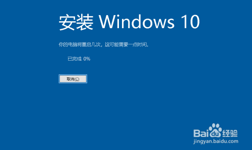 安装完当作后,Windows 10安装程序 提醒要求电脑从头启动,继续安装系统(太快,没有截到图);