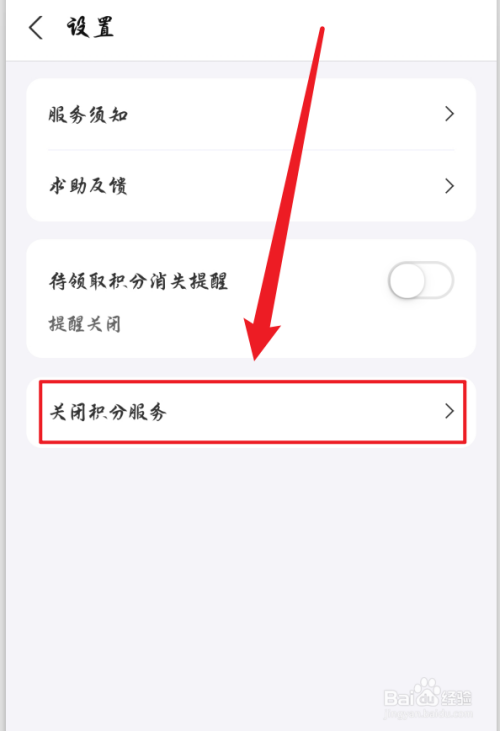 最后,点击设置中的【封闭积分办事】选项即可。