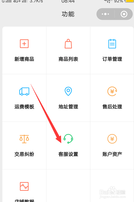在功能里的找到客服设置,点击打开