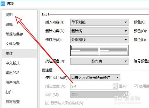 这时就会打开WPS2019的选项窗口,点击左侧的视图菜单。