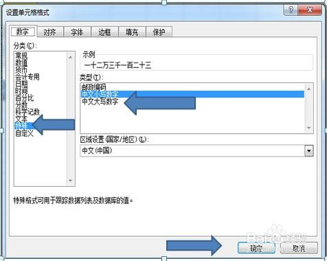 下一步,则点击特别,并选中中文大写数字,点击确定即可
