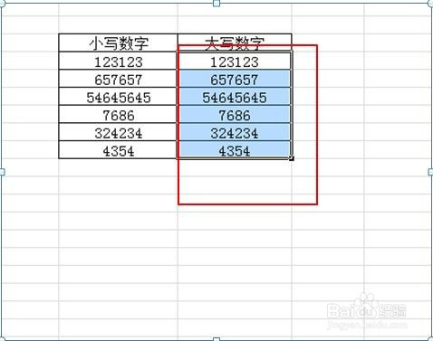 2.然后,选中要转换数字的表格内容