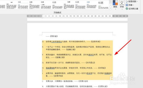 打开word文档。选中需要设置布景色的段落。