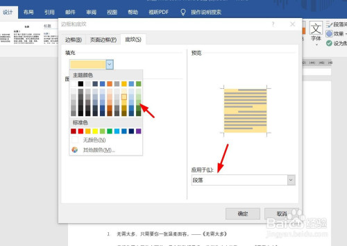 选择段落的填充颜色。将“应用于”选为“段落”。点击“确定”。