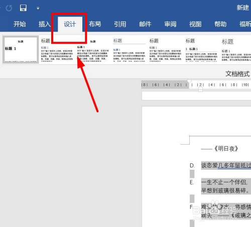 点击菜单栏“设计”。