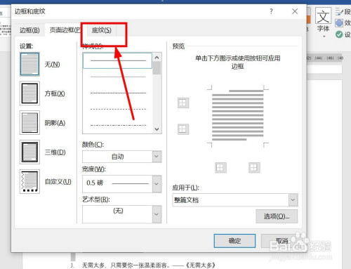 点击“底纹”。