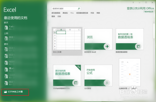 从头打开Excel 2016,可以发现比来利用的文档已经没有了。