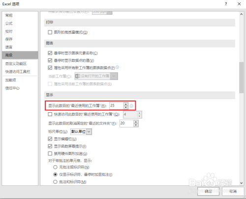 ●设置"显示此数量的”比来利用的工作簿“”为 0。
