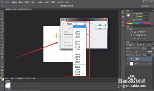 点“文字”菜单下的“文字变形”,打开“变形文字”对话框。