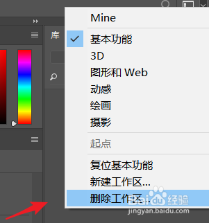 3. 点击右上角的下拉箭头睁开下拉菜单,选择删除工作区。