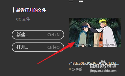 1. 双击打开PS软件后,在导航页面中随机打开一个文件。