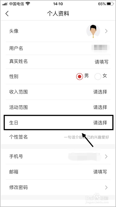 此处填写本身的生日,填写完毕就不克不及点窜了。