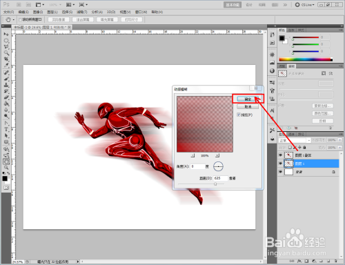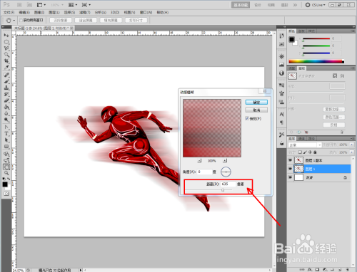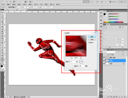 将动感恍惚设置栏中的角度设置为:0后,按图示设置好动感恍惚的距离参数。完当作后,点击【确定】确认;