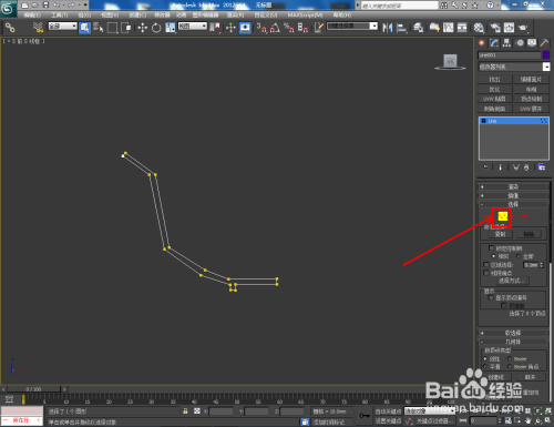 点击【建立】-【图形】-【线】,按图示绘制一个多段图案。点击右边工作区中的【极点】,按图示对图案上的点进行圆化处置;