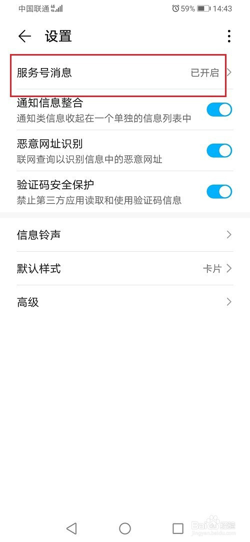 第四步进去设置之后,点击办事号动静