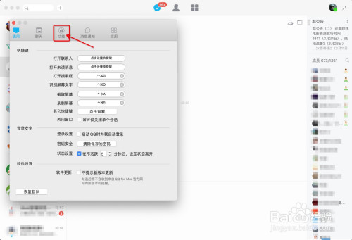 总结:打开【QQ】- 输入【QQ号】和【密码】- 【偏好设置】- 【功能】- 【点击设置】- 选择【截屏保留格局】。