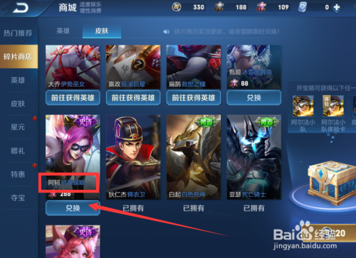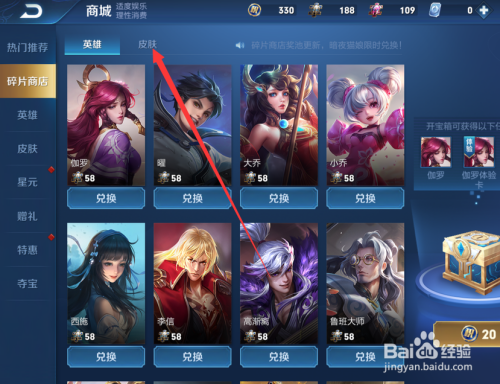 在碎片商铺上方找到皮肤。