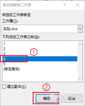 在要移动的工作表标签“1”上点击鼠标左键,然后按住鼠标左键拖动到“4”和“5”之间,释放鼠标即可将该工作表移动到此位置上。
