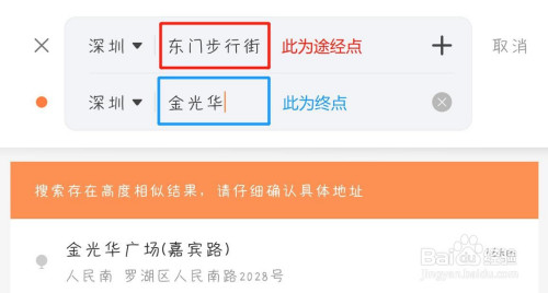 此时,“请输入终点”的右边有一个加号,点击一下即可添加一个路过点选项框。