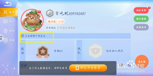 点击完当作后会返回小我中间的本家儿界面中,如图,此时个性签名已经更改。