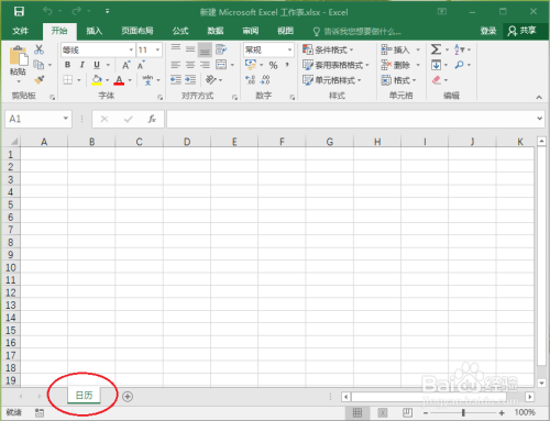 ●此时“Sheet1”标签进入文字编纂状况,输入新名称,例如“日历”;