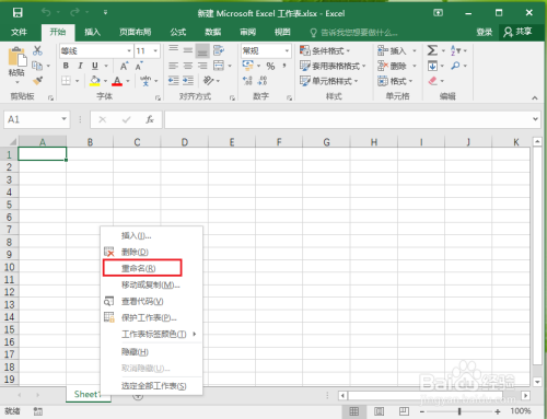 在需要重定名的工作表标签“sheet1”上点击鼠标右键。