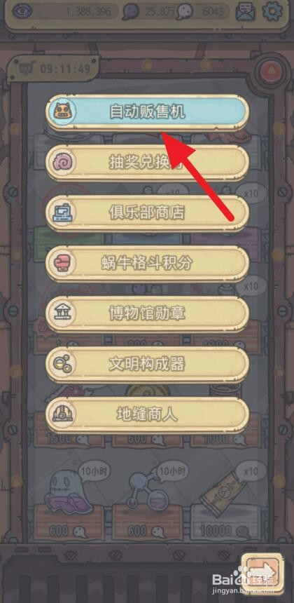 进入主动贩售机,点击页面左上角的【法度焗蜗牛】。