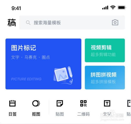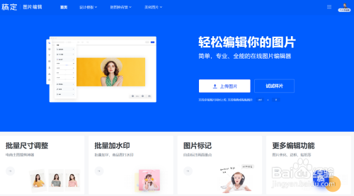 先打开稿定设计软件-点击图片标识表记标帜。网页版叫做稿定设计-图片编纂器。接下来给大师演示下功能。