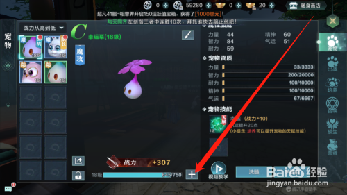 点击进级道具图标,就可以当作功的进级宠物了