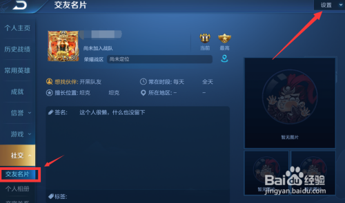 3、找到结交手刺,点击右上角的设置。