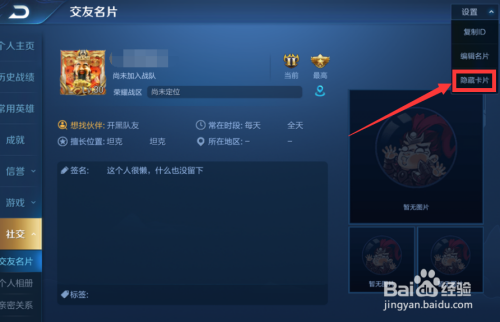 4、在设置里选择埋没卡片即可。