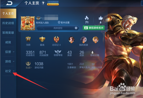 在小我本家儿页里点击左侧的社交。