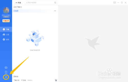 在“迅雷11”本家儿界面中,点击左下方的“三”按钮。